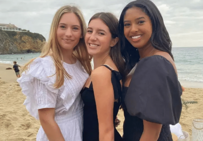 瓦妮莎和娜塔莉亚曾代表科比参加了名人堂,瓦妮莎上台演讲,而娜娜则代替她的父亲穿上了名人堂夹克。而娜塔莉亚还参加了高中毕业舞会,她和同学进行合影,身高很显眼。