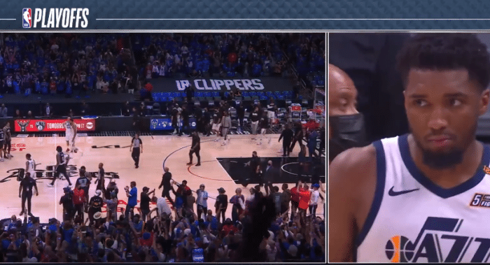 很快泰伦卢去到场地内和自家球员拥抱庆祝,同时还和爵士的康利等人致意。泰伦卢和斯奈德拥抱,这个系列赛他们的球队给球迷们奉献上了精彩的比赛,确实值得尊重。