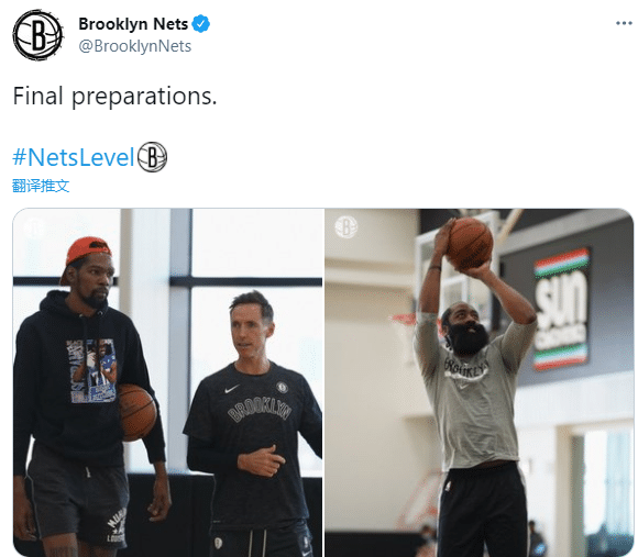 JRS直播网讯 北京时间6月19日,布鲁克林篮网备战抢七大战,篮网官推晒出杜兰特、哈登带队训练的画面,晒照并发推写道:最后的备战;抢七将在明天开打,地点是篮网巴克莱中心球馆,篮网拥有主场优势。