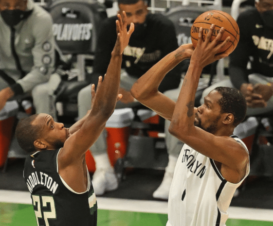 本场比赛篮网全队只有3人得分上双,其中杜兰特已然贡献32分11篮板3助攻,哈登9中5贡献16分,格里芬则得到12分6篮板,反观雄鹿,字母哥+米德尔顿+霍勒迪就合砍89分,达到了本场比赛篮网全队得分总和