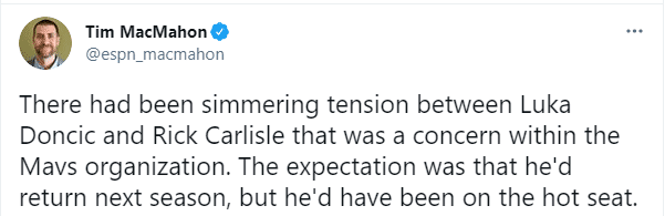 库班公开回应:我真的很喜欢里克-卡莱尔。他不仅仅是一个好教练,也是一个朋友和知己;我们的关系不仅仅是篮球,我知道这永远不会改变。