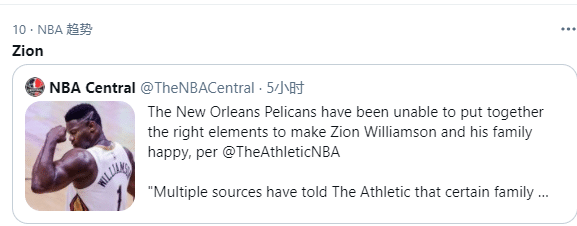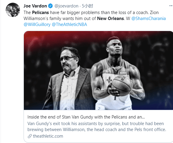美媒TA报道,鹈鹕一直无法让锡安和他的家人开心,锡安的一些家人想要锡安去另外一支球队;此外,鹈鹕管理层处理雷迪克的方式激怒了锡安——雷迪克早就申请离队,大卫-格里芬承诺会把他交易到自己想去的地方,结果鹈鹕管理层没有遵守诺言,把雷迪克交易到独行侠。