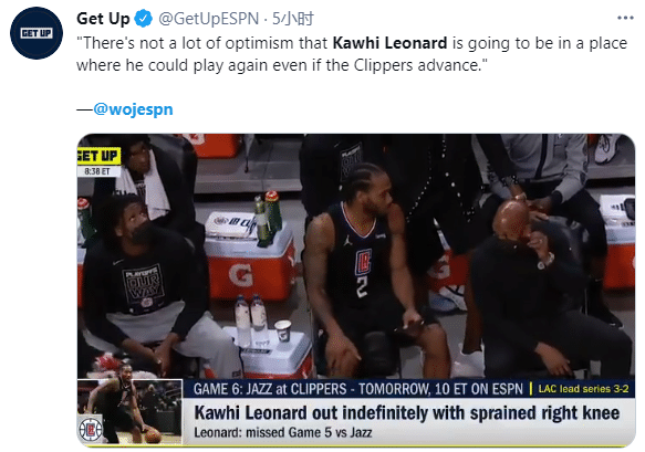 小卡十字韧带伤势真的这么严重吗?若真如名嘴所说,恐怕小卡复出无缘,或因伤赛季报销;此前ESPN名记沃纳罗斯基在节目中透露,小卡不会出战西部半决赛剩下的两场比赛,即使快船最后晋级西部决赛,小卡复出一事也没有存在很大的乐观预期。