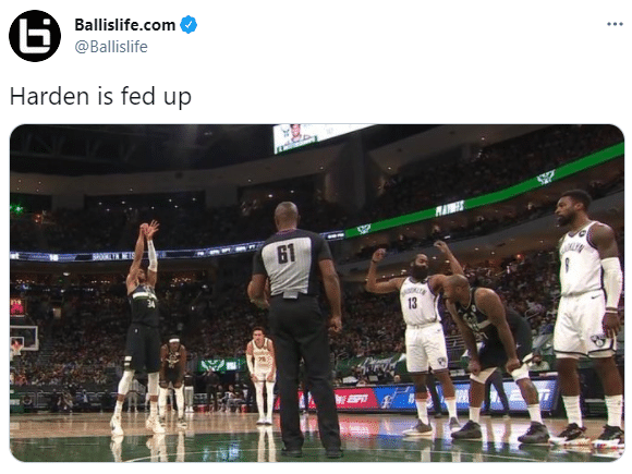 在字母哥一次罚球再一次疑似罚球超时的时候,哈登举起双手向裁判抗议,篮网队的教练组也向裁判抱怨,可惜的是,这些声音,裁判再一次充耳不闻。