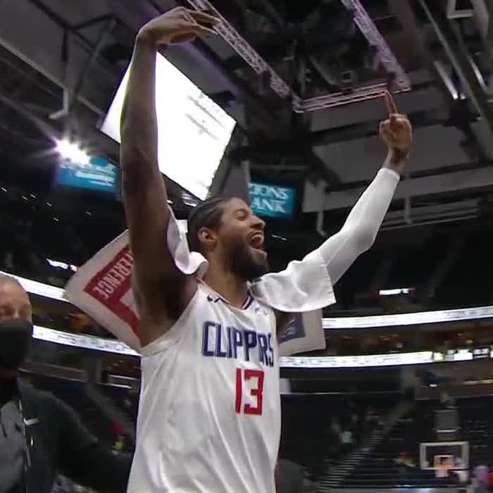 乔治证明之战,单核带队拿下胜利;比赛还剩7.1秒,乔治提前下场庆祝,先后拥抱考辛斯、曼恩等队友,然后做出一个庆祝胜利的手势
