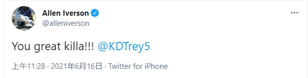 “答案”艾弗森发推:杜兰特,你是一位伟大的杀手。