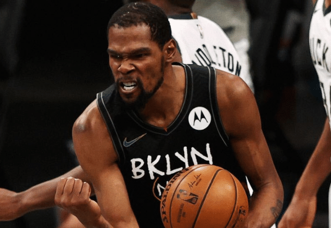 关键时刻,杜兰特亮起死神镰刀收割比赛,死神三分太狠,此时杜兰特握拳发狠庆祝,死神尽情宣泄内心的情绪,哈登怒吼庆祝,篮网主场瞬间炸了;赛后杜兰特48分钟狂砍49+17+10超级三双引热议。