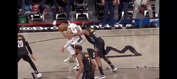 当字母哥准备发力强打哈登的时候,篮网队的队友准备过来包夹,减轻哈登的压力,而此时登哥的行为实在是太扎心了,登哥向自己的队友挥手示意,别过来帮忙,我能搞定他。