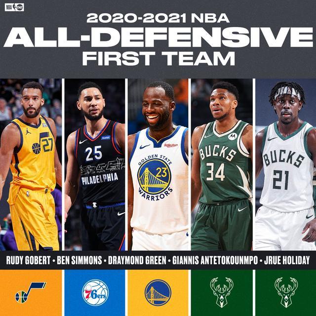 JRS直播网讯北京时间6月15日,NBA官方公布了2020-21赛季的年度最佳防守阵容。入选最佳防守阵容一阵的球员包括戈贝尔、西蒙斯、德雷蒙德-格林、字母哥、霍乐迪。入选最佳防守阵容二阵的球员包括阿德巴约、巴特勒、恩比德、塞布尔、莱昂纳德。