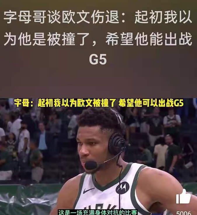 在比赛结束后,字母哥也被记者问到这个问题,关于欧文的伤病,字母哥表示:起初他认为欧文是被撞伤的,发生这样的事情,字母哥也表示遗憾,不过字母哥希望欧文可以出现在系列赛的G5,同时字母哥也表示希望雄鹿队可以继续保持专注。