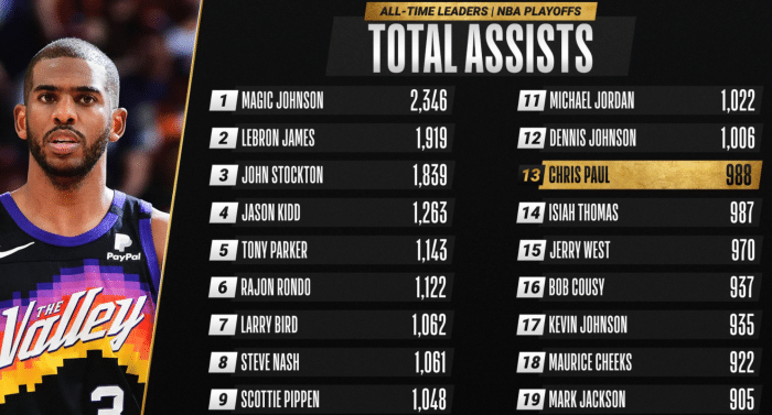 加上这7次助攻,保罗季后赛生涯总助攻超越微笑刺客,升至历史第13位。