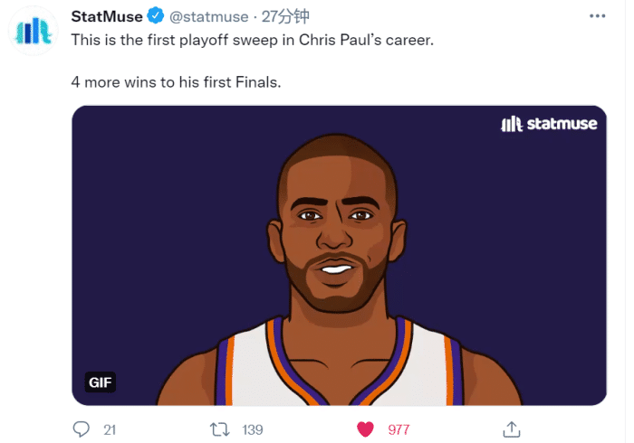 这是保罗季后赛生涯首次横扫对手,而且还是横扫的新科MVP约基奇,让后者尴尬成为历史第5位被横扫的当季MVP!