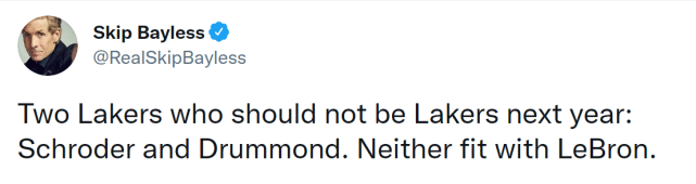 顶薪变底薪?庄神应该不会接受这么大的落差。27岁的他,依然可以场均贡献两双数据,拿底薪确实有点说不过去。不过,他在效力湖人的时间段里,也没有展现足够的实力。名嘴斯基普-贝勒斯认为,庄神和施罗德都不会继续留在湖人了,因为他们俩都不适合詹姆斯。