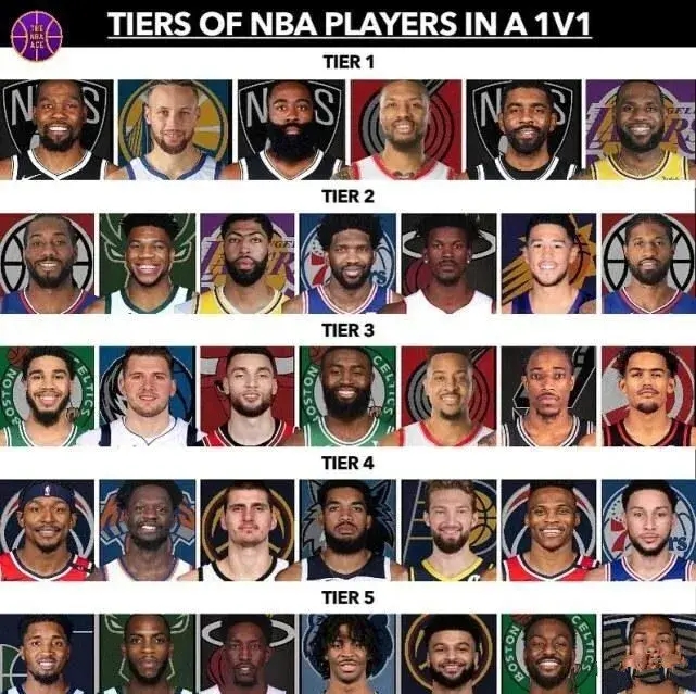 JRS直播网讯北京时间6月12日,NBA季后赛激战正酣,有美媒给现役所有球员的单打能力进行分档,一共有5档!