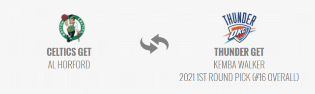 方案1:绿军送出沃克和2021年的16号签,得到雷霆的霍福德