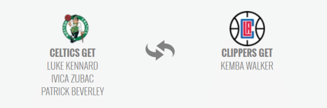 方案3:绿军送出沃克,得到快船的肯纳德、祖巴茨和贝弗利