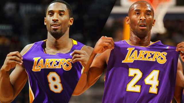 科比生涯曾5次夺得总冠军,3次穿着湖人8号球衣,2次穿着湖人24号球衣。据悉,科比在湖人穿8号的原因有两个,其一,那是他儿时在意大利所穿的球衣号码,其二,他在阿迪达斯训练营时穿过143号球衣,1+4+3也正好等于8。