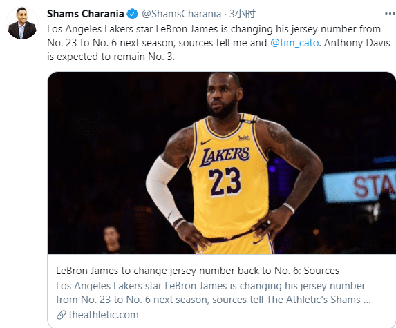 詹姆斯换球衣号码这事也引发了球迷的热议,媒体方面也跟进,如果詹姆斯可以在湖人队再次取得成功,他可能成为NBA历史上唯一一个有4件球衣退役的球员,SO,你觉得詹姆斯是有机会吗?