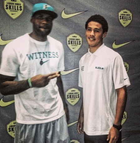 在淘汰湖人队之后,为了激励年轻小将,赛后,膝盖包裹着厚厚冰袋的詹姆斯将自己的比赛球衣签上名字和寄语送给了布克,并对于布克送上了祝福。PS,这里不要再说布克表情不开心,不愿意接受球衣了,布克日常的表情管理就是如此,除了和詹娜在一起,这哥们几乎都是这样的表情。