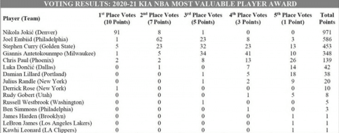 JRS直播网讯 哈登、詹姆斯与伦纳德在联盟中地位非常高,不过在2020-21赛季MVP票选中,他们三人都是只拿到一票,确实叫人刷爆眼球,看来联盟是到了改朝换代的契机?当然,还有一点是哈登、詹姆斯与伦纳德都在常规赛受困伤病问题,他们没有在常规赛更多地展现自己,只是能拿到MVP选票,和哈登与伦纳德对比,詹姆斯则是缔造了一项连续18年拿到MVP选票纪录,这样的詹姆斯确实强,如果不是具备场均25分7.7篮板7.8助攻1.07抢断的数据,詹姆斯就不一定拿到MVP选票,这是詹姆斯个人实力的象征,无奈湖人战绩彻底拖垮了詹姆斯,在连续18年拿到MVP选票的同时,詹姆斯在MVP选票榜上生涯首创新低。