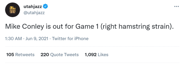 JRS直播网讯 北京时间6月9日上午10点,爵士主场迎战快船。对于爵士而言,一大打击是主力后卫康利因右腿筋拉伤无缘这场比赛,爵士官方已经宣布了这一消息。33岁的康利在首轮对阵灰熊的比赛中加重了腿筋的伤势,幸运的是核磁共振检查显示,他的韧带没有遭遇重伤。常规赛期间,他曾两次因腿筋问题缺阵。