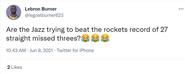 JRS直播网讯 北京时间6月9日,爵士主场迎战快船,打响这轮西部半决赛的第一战。比赛第一节,爵士18-25落后快船7分。他们这一节的命中率引起热议。爵士首节28投5中,三分20投5中,投篮命中率14.8%,三分命中率21.1%,铁出了新高度。