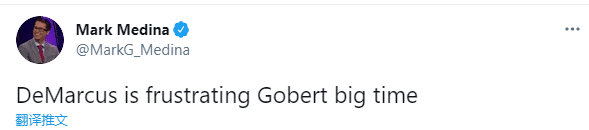 考辛斯季后赛首秀引热议,冲上热搜榜第四名,名记Mark Medina发推写道:考辛斯让戈贝尔很沮丧。