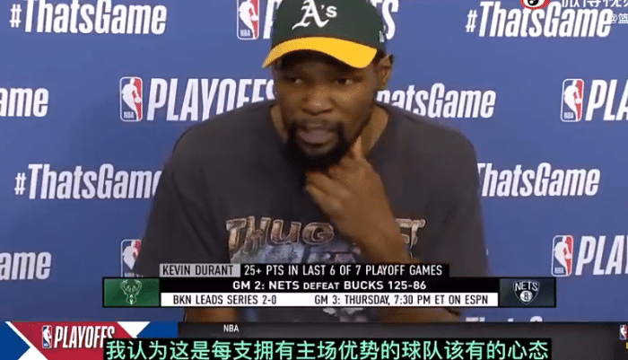 当记者摆出一个愚蠢的问题(小腿受伤两周年)杜兰特尬笑着耸耸肩回答“当然,你要我说什么呢”怎一个轻松写意了得。在比赛中的得分看起来是那么轻松,根本无视防守人,想怎么投就怎么投。赛后他的气质还是保持着自我,带着一定小绿帽谈到G3“每支拥有主场优势的球队都是我们这样的心态,我们知道G3有多重要,我们知道他们的主场球迷会有多疯狂,他们会在主场打得很好,我们会迎接挑战”