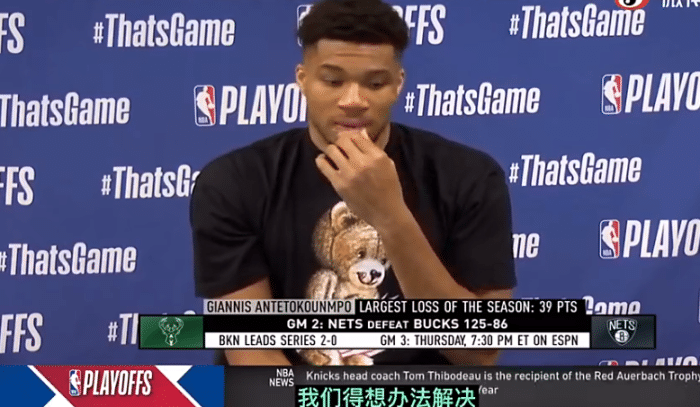 而字母哥这边反复被问到的却是罚球的心态、大比分惨败后的心情,接受外界对他的各种批评!最多时曾落后49分,他在长边眼神落寞,站在罚球线上是球迷的各种嘲讽!赛后谈到防杜兰特的问题,拖着下巴不断摇头“我们得想办法解决,防是防不住的,只能尽量去限制,安排更多的人手。只要一换防他就会单打,他能很舒服地出手,只要他找到节奏,我们就没办法了。”