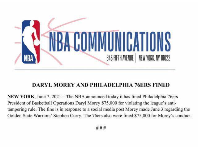 这样的举动显然是联盟不允许的,毕竟赛季还没有结束,库里如今还是勇士的球员,费城也没有到可以接触库里的时间,因为这个社交媒体,费城的管理层被罚款了15万美元,这对于他们来说是一个惨痛的教训,因为或许他们在招募一个根本不可能考虑他们的人。