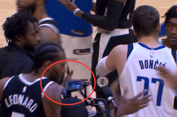 不过乔治和东契奇攀谈的时间实在太久,莱昂纳德一时之间没有找到和东契奇拥抱的机会,因此找了其他独行侠球员握手。这个空档,考辛斯、小莫里斯、曼恩纷纷和东契奇拥抱。最逗的是贝弗利,他伸出自己的手,可是东契奇一直背对着他,直到最后,贝弗利才得到了东契奇握手的机会。