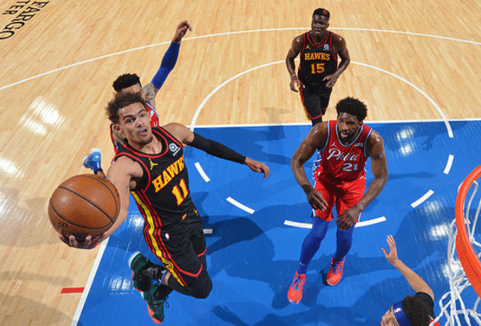 上半场的比赛76人主场球迷大声高特雷杨正在秃顶,但是正是这样的话激起了特雷杨的斗志,上半场的比赛他13投8中,三分球7中4、罚球5中5,砍下25分2篮板7助攻2抢断的数据,格林这一点被完爆,杨上半场25分中有19分是在面对丹尼-格林主防时所得,更是有球迷调侃道:特雷杨过丹尼格林像过清晨的马路。
