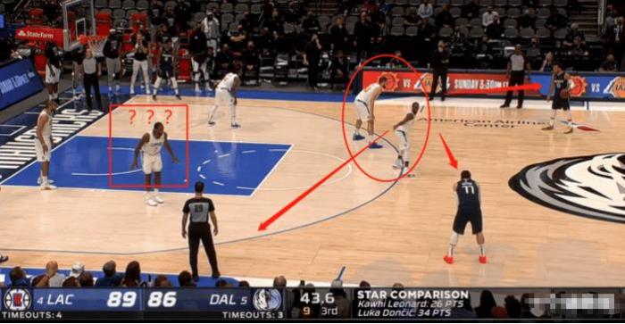 一时间尴尬的伦纳德竟然上演了防守空气的处境,所幸的是这时候,隆多示意伦纳德不用管底角的哈达威,上前防守东契奇。