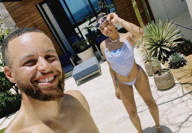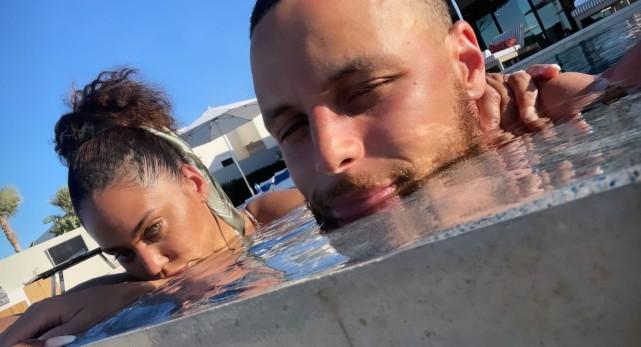 最后我们再来说说提前放假的小学生——库里。没有了季后赛的压力,库里和妻子阿耶莎来到了墨西哥度假、放下篮球,在度假中,库里尽情享受自己的假期,他和阿耶莎在泳池戏水,甚至上演了拥吻,撒下了一地狗粮。