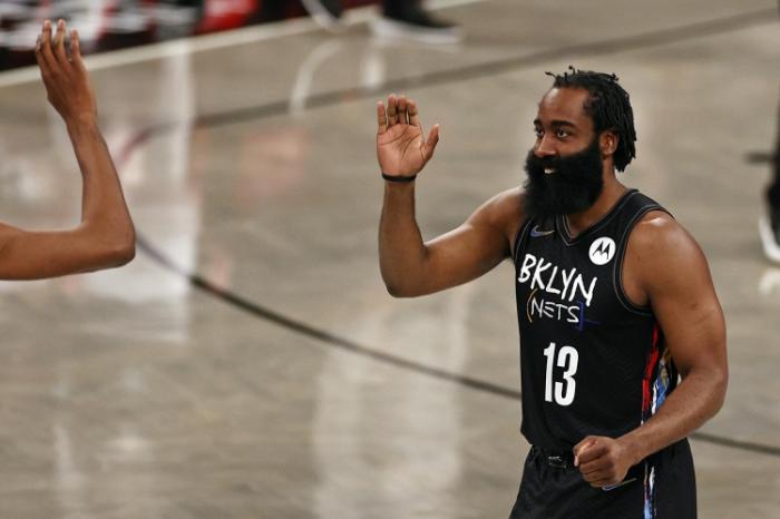 比赛刚开场,篮网进攻不佳,开场被打9-2攻势,不过暂停之后,篮网打出超级攻势,短短3分25秒,篮网轰出一波19-4超级攻势,其中哈登3投3中高效拿到10分,哈里斯三分2中2,杜兰特也有一个三分进账,这便是篮网的恐怖之处,随时都可能打出一波流。