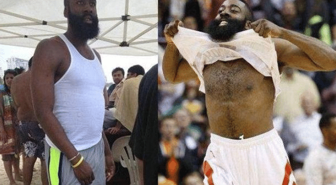 哈登自出道以来,就是不折不扣的技术流。他当时给人的感觉就是身体偏瘦,却拥有一手出神入化的欧洲步。因为视野广阔,传球技术出众,他常常被教练安排带队打第二阵容。又因为哈登组织和得分总是能合理地分配,他也如愿地获得了当年的最佳第六人。但说到打球的爆发力及防守,他却始终不及大哥杜兰特和二哥威少。后期哈登转会火箭,成为了休斯顿的绝对核心。为了增加杀伤力,哈登的体型也明显大了一圈。即便哈登身体变强壮了,但他也不愿意把更多精力放在防守上。跟攻防一体的科比、韦德相比,防守永远是哈登的短板!
