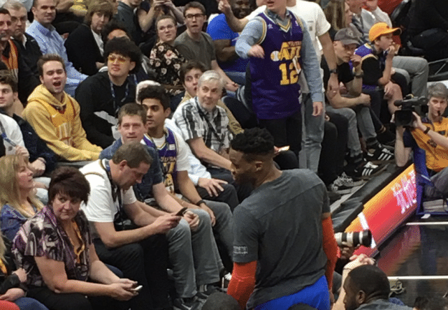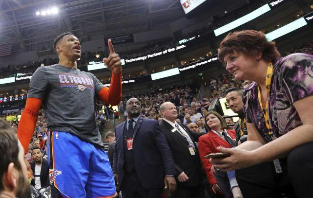 2019年3月12日,雷霆客场对阵爵士。坐在板凳上的威少突然冲着不远处的爵士球迷发飙,他骂道:“I’ll f*ck you up. You and your wife!(我x你,你和你的妻子)”。赛后,威少解释说球迷冲他说了一些带有种族歧视的话,如果他再经历这一切,他还会继续如此回应。