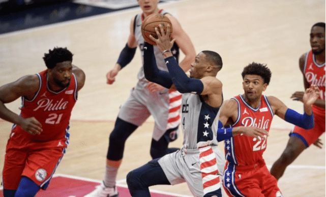 JRS直播网讯 今天对于威少来说无疑是非常糟糕的一天,5月27日,奇才队对阵费城的比赛拉开大幕,虽然威少对于比赛的胜利充满了饥渴,但是奈何实力上的差距还是让奇才很难让人看到希望。