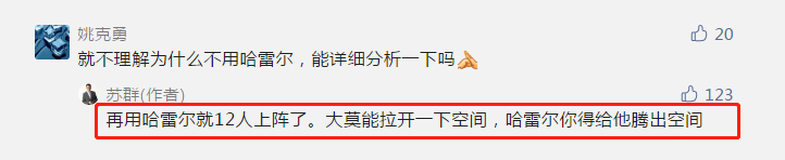名嘴苏群在社媒上谈到了湖人弃用哈勒尔的话题,他给出了原因。有球迷提问,“不能理解为何不用哈勒尔,能详细分析下吗”。