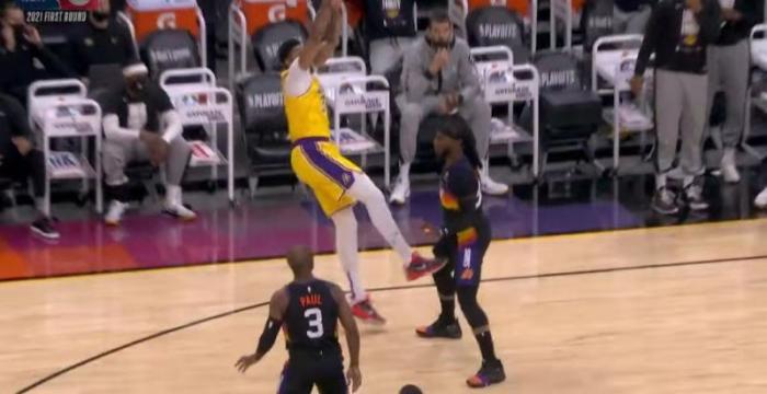 比赛开场后,湖人并没有进行变阵,但是湖人队的防守强度和专注度上做得更加的好,比赛开始1分多钟后,浓眉哥制造了太阳队悍将克劳德两次犯规,不过因为踢裆克劳德,浓眉哥也吃到了一个一级恶意犯规。