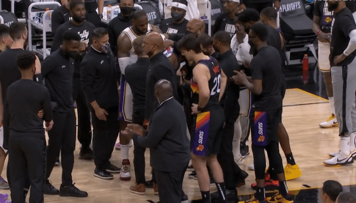 JRS直播网讯 北京时间5月24日,湖人和太阳首轮G1正式开打,第二节场上发生受伤事件,36岁保罗受伤离场,詹姆斯第一时间拥抱并安慰CP3;目前他已经重返替补席,伤势应该无大碍。