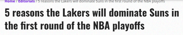 目前,湖人已经飞抵菲尼克斯,而他们对太阳的首场比赛将在北京时间5月24日凌晨3点30分开打。美媒Lakers Daily认为湖人将在首轮统治太阳,并列出了五大理由。