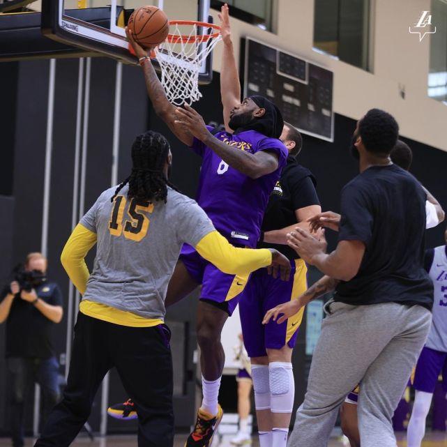詹姆斯在湖人身穿23号球衣,而在训练中,他常常身披6号。据湖人主帅沃格尔表示,詹姆斯参加了今天的全部训练。显然,他已经为复出做好准备。
