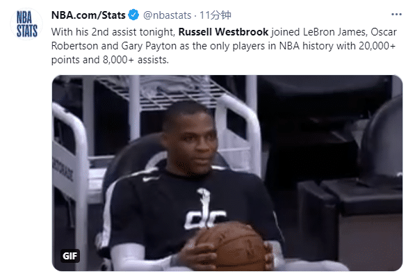 韦少比肩勒布朗-詹姆斯、大O罗伯特森和加里-佩顿成为NBA历史第四位打成得分20000+助攻8000+的球员,不可思议的韦少太疯狂,对阵老鹰首节6投3中拿到10分4助攻2篮板,若今天再次拿到三双,他将会正式超越大O成为NBA历史三双王。