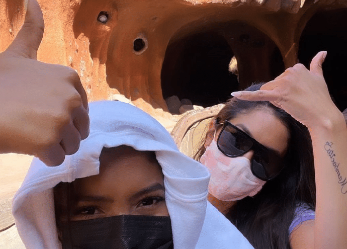 而娜塔莉亚还晒出了她和瓦妮莎的合照,祝她的妈妈母亲节快乐。可以看出,娜塔莉亚穿着白色的衣服,戴着帽子和口罩,还竖起大拇指开心比划手势。而瓦妮莎则在娜塔莉亚的身后,虽然戴着墨镜和口罩,但看起来瓦妮莎的心情非常好,她也比划手势,手臂上的纹身清晰可见。