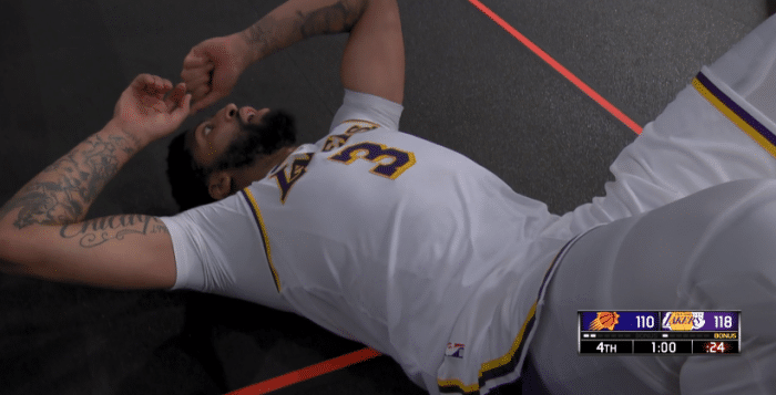 赛季最后一次对决,詹姆斯、施罗德和库兹马都缺席比赛,浓眉苦战41分轰下42分12篮板5助攻3盖帽3抢断,攻防一体带队拿下胜利,湖人主场球迷为浓眉高呼MVP;常规赛对阵太阳1胜2负拒绝被横扫;赢球后湖人38胜30负继续排在西部第七,落后西部第六的开拓者1个胜场,在常规赛还剩下4场的情况,湖人继续冲击西部第六。