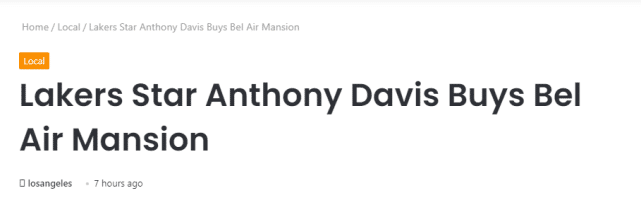 JRS直播网讯 北京时间5月8日,据Therealdeal网站报道,湖人球星安东尼-戴维斯已经在洛杉矶的顶级富人区(贝莱尔)购置了一套配备篮球场和游泳池的豪宅,消息源透露,交易价格是3200万美元。