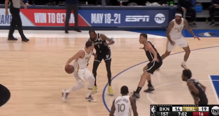 首节独行侠的进攻做得不错,他们一度领先篮网两位数,其中独行侠表现不俗,尤其是首节初期,他在外线持球面对杜兰特的防守,直接一个后撤步就晃开KD,然后轻松命中三分球。很显然这次东契奇单挑杜兰特,取得了完胜,他的假动作骗过了对手,出手也是很稳定的。