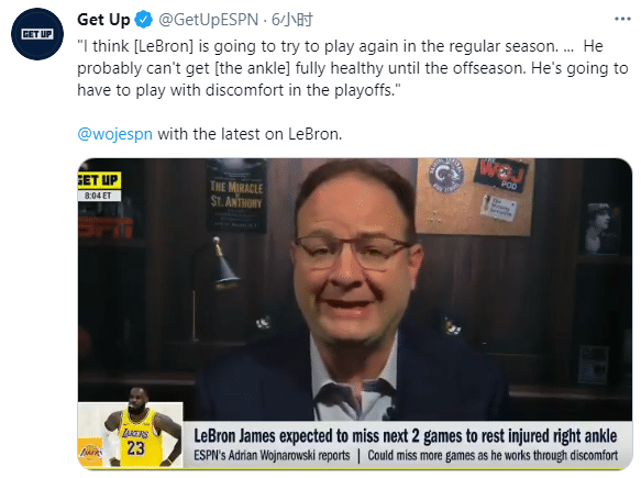 究竟詹姆斯何时才能100%痊愈?名记沃纳罗斯基透露,詹姆斯将会再次尝试在常规赛中出战,他对伤痛有着极大程度的忍耐力,不过他的脚踝确实需要休息,可能要到休赛期才能完全康复,他将不得不带伤打季后赛。