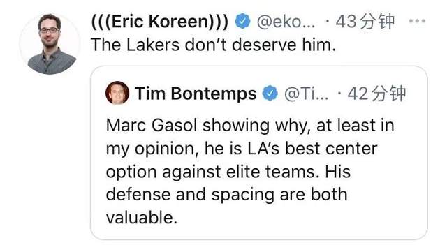 小加的优秀表现得到了沃格尔和湖人多名队友的称赞,沃格尔称他是一个天生的赢家。不过在媒体上,主流的声音却是为小加鸣不平。退役之后就十分活跃的帕金斯赛后发推质疑湖人为什么之前不让小加上场,名记埃里克则直言湖人不配拥有小加这样的球员。事实上,在德拉蒙德到来之后,小加的上场时间就大幅度缩水,湖人显然对他没有那么信任。自四月份以来,小加只打了八场比赛,尽管他这八场比赛的总正负值高达+31,但他仍然是替补中的替补。然而讽刺的是,在这种关键的比赛里,拯救湖人的不是德拉蒙德,而是这个被看轻的西班牙人。